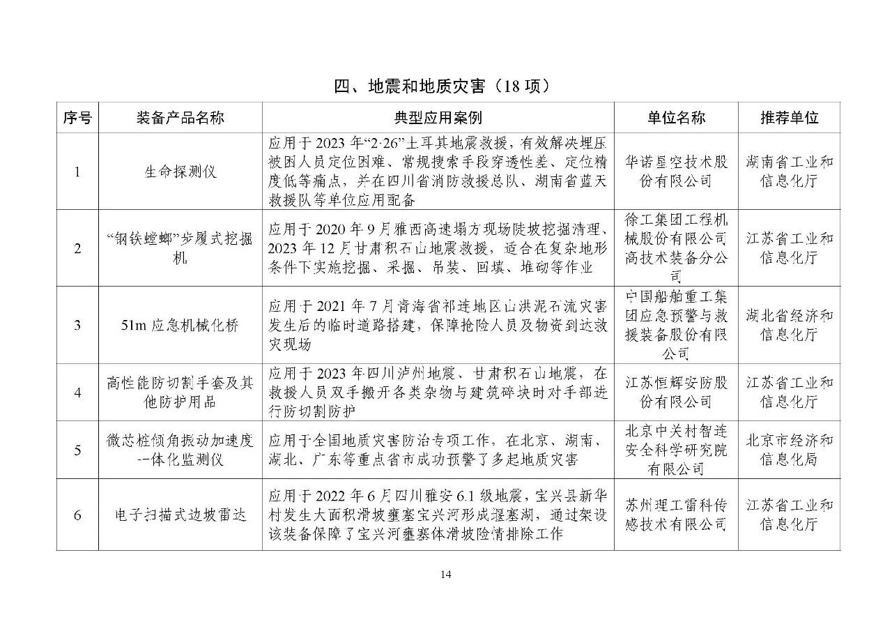 关于公布2024年安全应急装备应用推广典型案例名单的通知