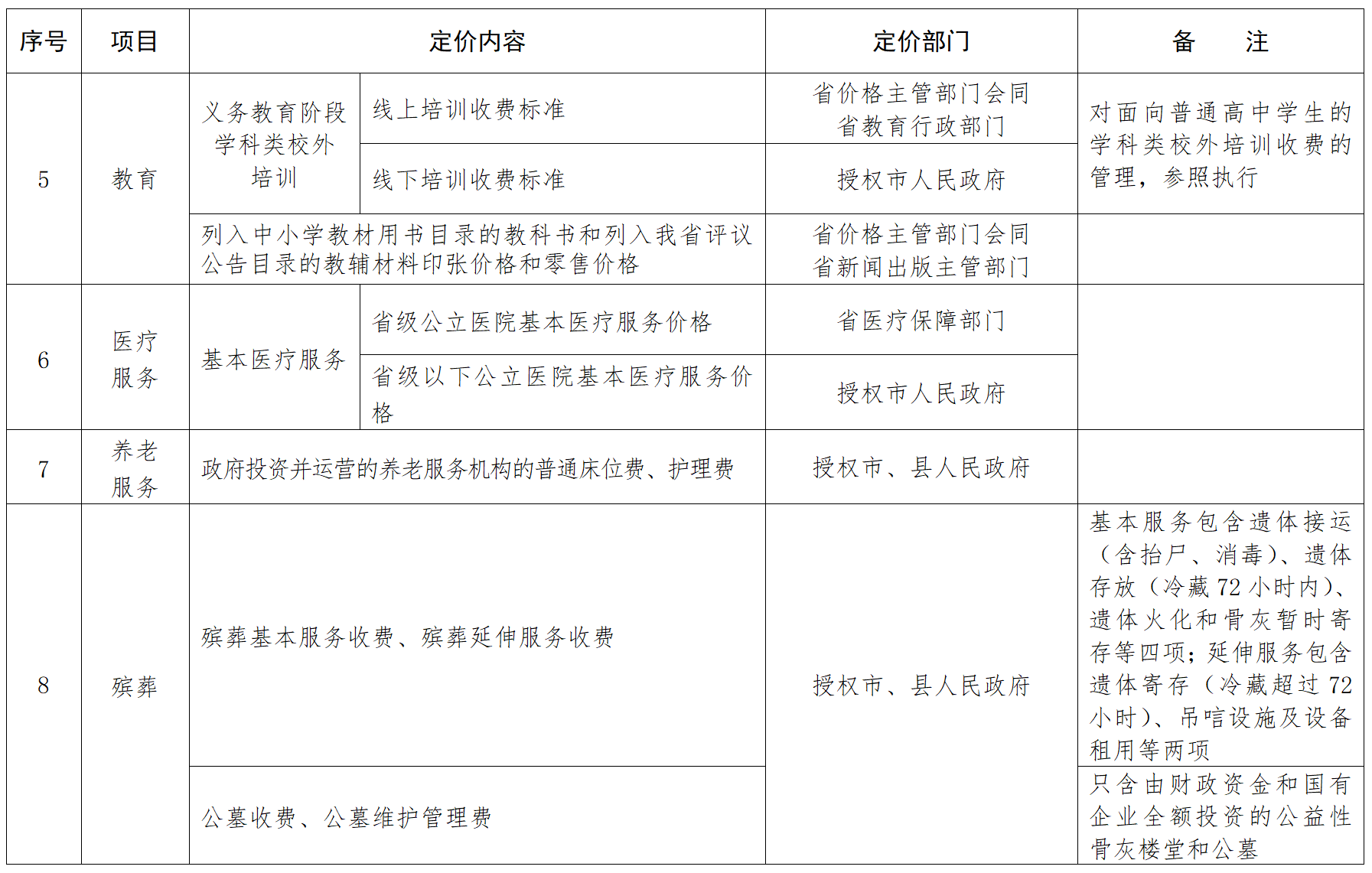 三、列入本目录的定价内容,包括定价项目的具体价格、收费标准、基准价及浮动幅度,以及相关的定价机制、办法、规则等。对涉及民生的价格和收费,充分考虑社会承受能力,进行合理监管,保障困难群众生活。