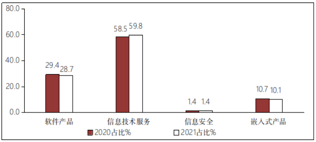 图5 2020年/2021年一季度软件业分类收入占比情况
