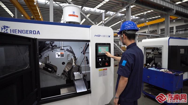 记者来到位于莆田市荔城区黄石工业园区的恒而达新厂区,这里机器嗡鸣,金属切割声不绝于耳,车间生产一片繁忙。其中,最让记者印象深刻的莫过于“削钢如泥”的CNC数控圆锯机。