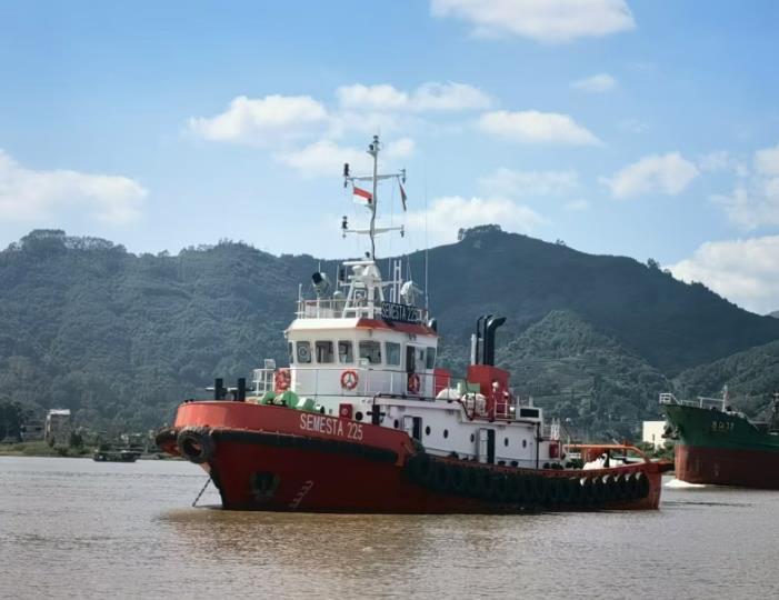 10月22日,新造船舶印度尼西亚籍“申玛斯达225”拖轮,在宁德白马港区办妥出入境边防检查手续后出境前往印度尼西亚冷岳港。
