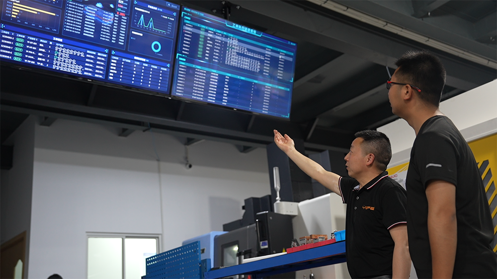 技术管理人员通过数据可视化大屏监控生产流程