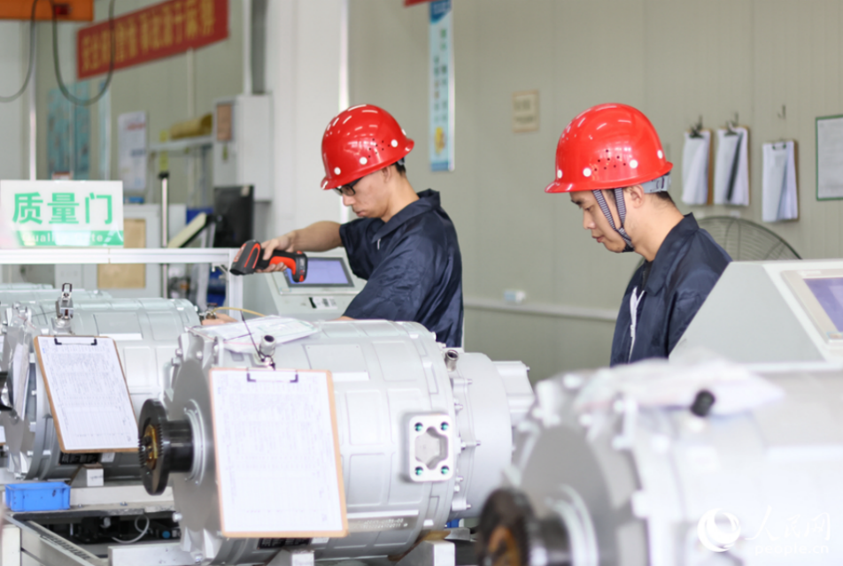 金龙新能源车间内,技术人员进行电机电控关键技术组装。
