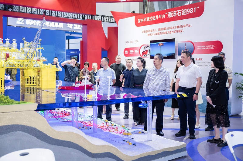 活动中,在现场讲解员的讲解引导下,大家先后参观航运物流及装备、海工装备、数智科技装备、福建馆、新时代十年成果展、船舶制造等主题展,全面了解党的十八大以来航海装备领域获得权威奖项的产品、技术和解决方案,以及航海装备发展方面取得的突出成就。
