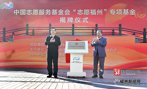林宝金、石大华为中国志愿服务基金会“志愿福州”专项基金揭牌。