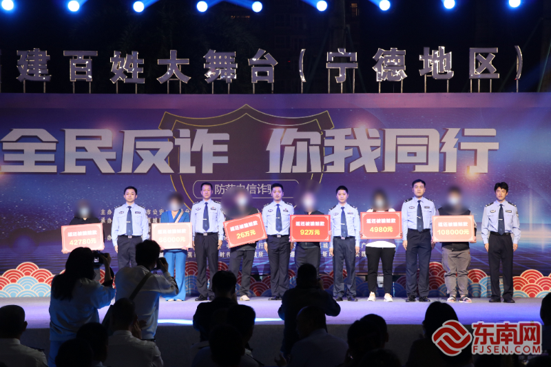 活动伊始,蕉南街道党工委书记林彬代表主办方现场宣读了全民反诈倡议书。随后,巡特警战术格斗表演《反诈先锋》、反诈歌曲《爱你》、相声表演《身边的诈事》、RAP《我不听》、快板《我们都是反诈宣传员》等节目轮番上演,以群众喜闻乐见的形式,将生活中常见的诈骗方式通过艺术的表现手法展示给现场观众。现场还举行了简短的返还赃款仪式,主办方邀请到部分受害者代表来到现场,以自身案例警醒广大市民朋友。