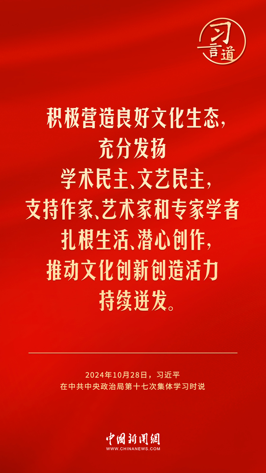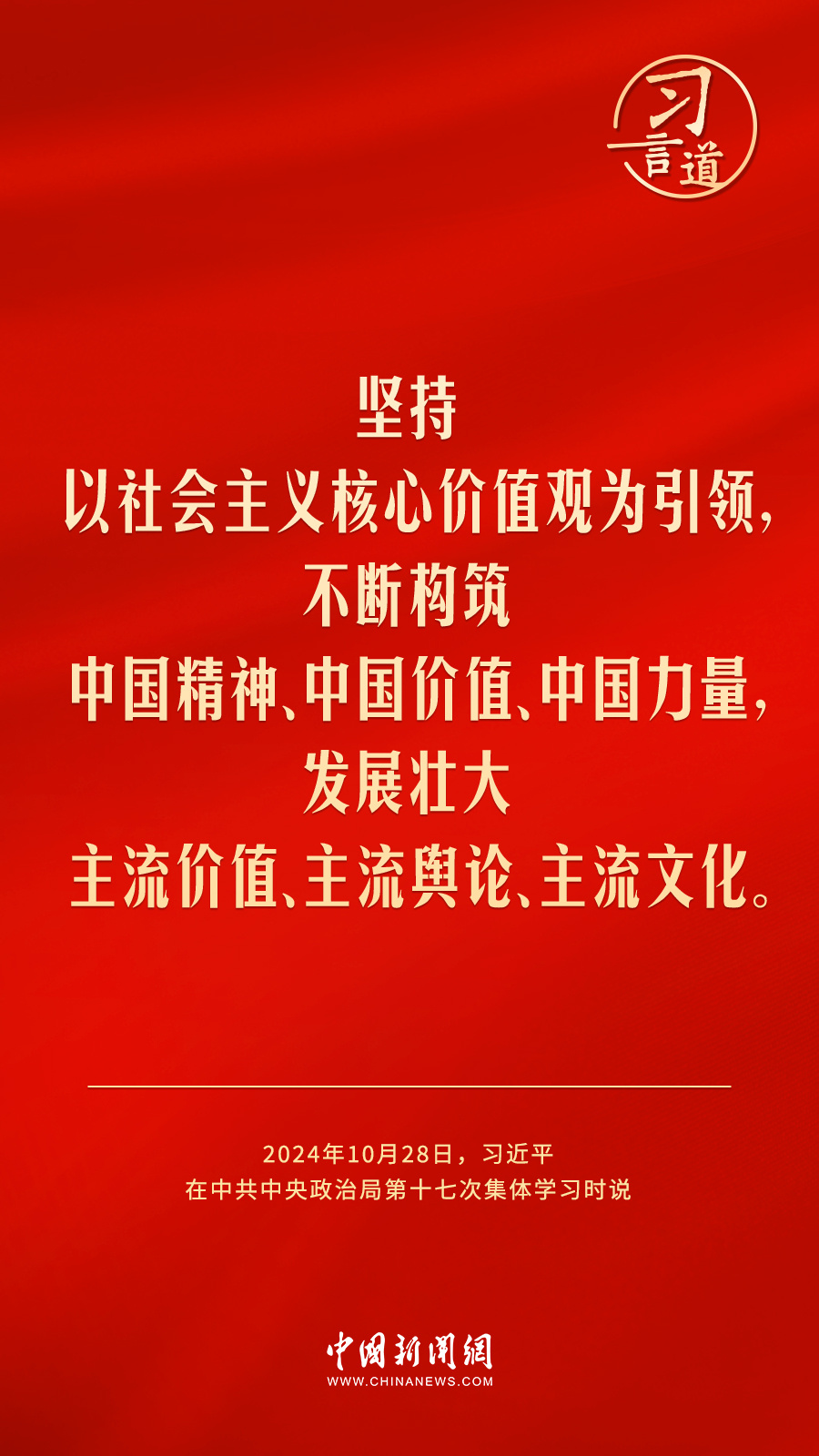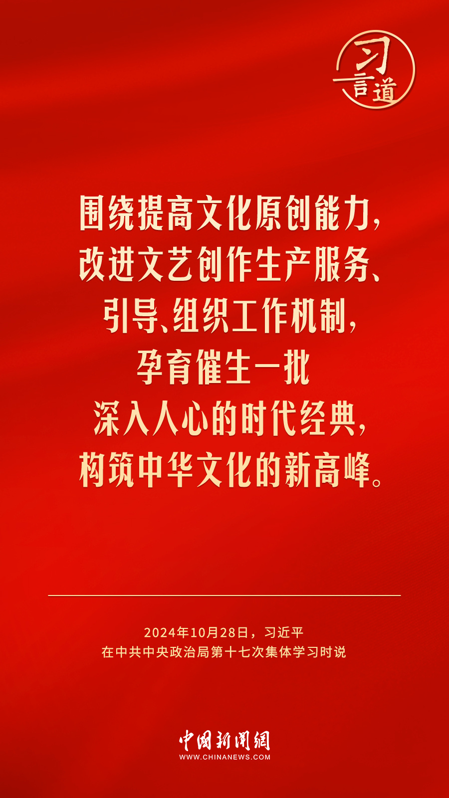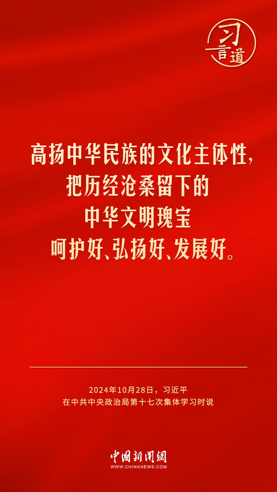 中共中央政治局10月28日下午就建设文化强国进行第十七次集体学习。中共中央总书记习近平在主持学习时强调——