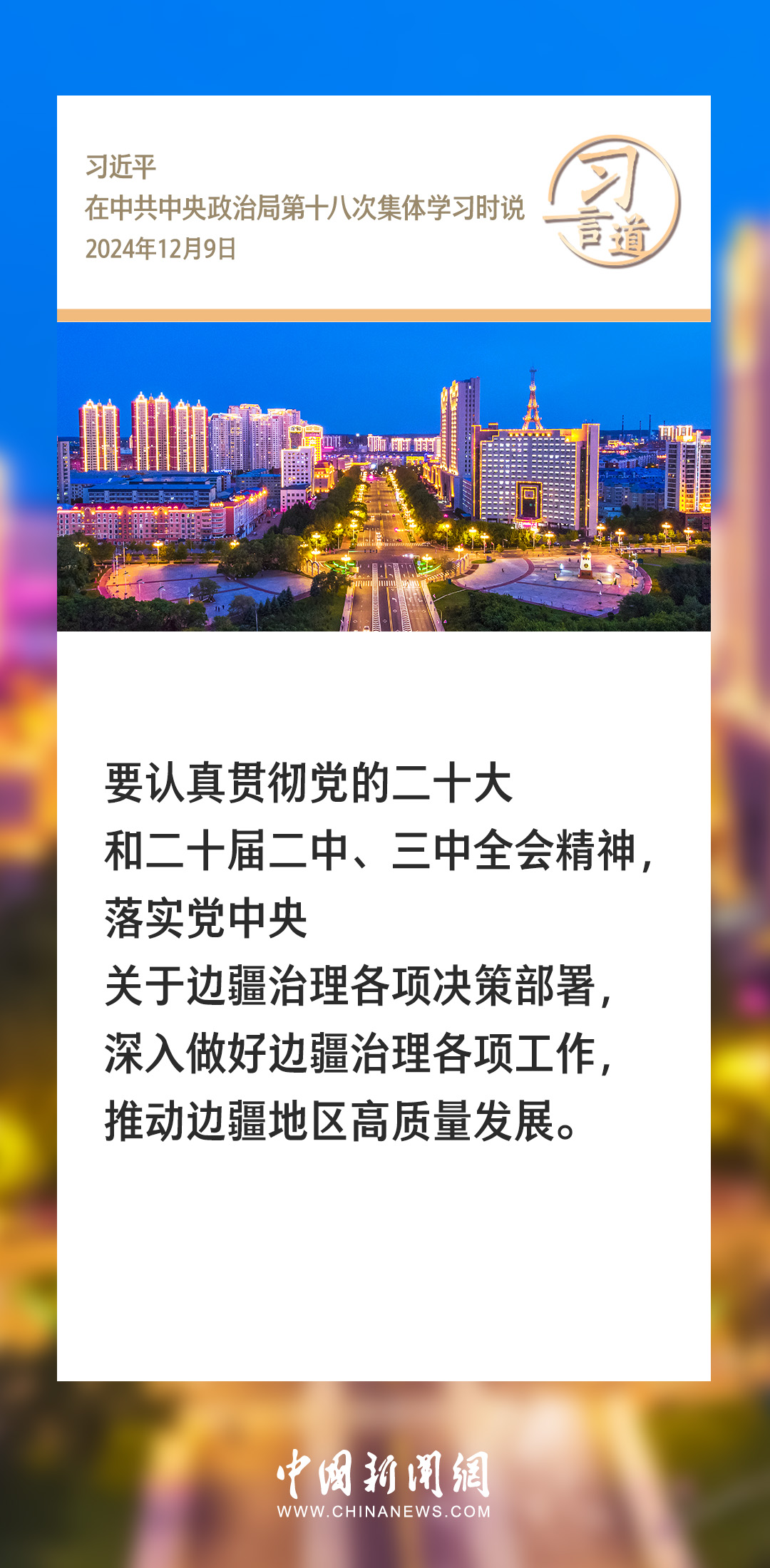中共中央政治局12月9日就我国历史上的边疆治理进行第十八次集体学习。中共中央总书记习近平在主持学习时强调——