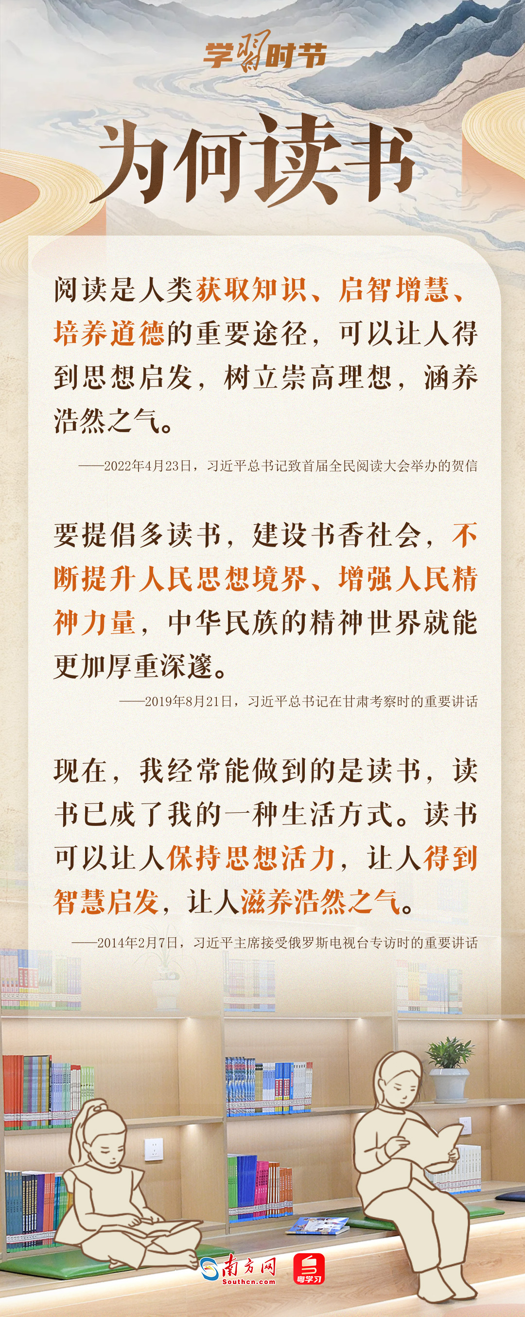 4月23日是第30个世界读书日。我们为何要读书?应如何读书?读些什么书?让我们跟随总书记的“读书指南”,一起“爱读书、读好书、善读书”。